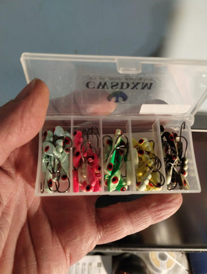 Habe diese auf einen Wochenendausflug mitgenommen und sie haben einen echten Unterschied bei der Sichtbarkeit unter dem Eis gemacht. Die Auswahl ermöglicht es mir, schnell die Ködergröße anzupassen, und die Box hält alles ordentlich.